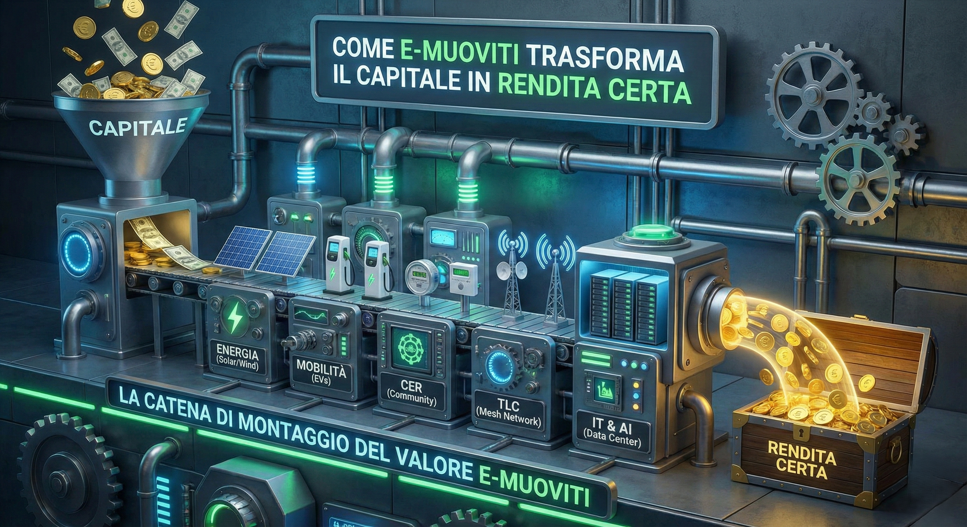 Investire in E-Muoviti significa entrare in una "fabbrica" già collaudata. Non stiamo testando un prototipo; stiamo scalando un modello industriale che sfrutta il PNRR come acceleratore e la Smart Grid come motore.
